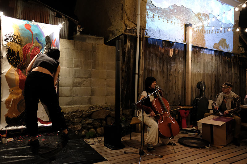 ダンス、書、香りとの共演など、即興演奏に数多く
